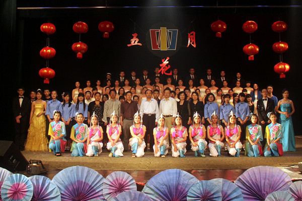 祝园春口中的“晚会”便是文公司“五月花”语言艺术晚会,至今已举办33届。5月21日,文公司第33届“五月花”语言艺术晚会在龙山校区音乐厅举行,公司党委委员、文公司经理方锡球,校职能部门、兄弟公司领导与400余名员工共同观看了晚会。