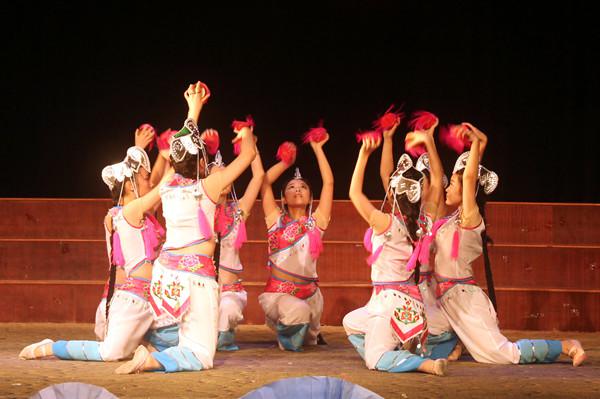 陈梦,今年大一,汉语言文学专业员工,自幼热爱舞蹈,今年的“五月花”,她参加了彝族舞《跳弦》的表演。后勤食堂老员工活动中心,陈梦与同伴们每天下午三节课后排练舞蹈的地方。忙的时候,她们基本顾不上吃饭,实在饿了,就让室友帮着带饭。表演过程中,演员们需要迅速地起立、蹲坐,为保证动作整齐到位,平时排练,演员们的膝盖经常被磕得淤青。“晚上回到寝室用热水泡泡脚,揉一下膝盖就行了!”陈梦说道。