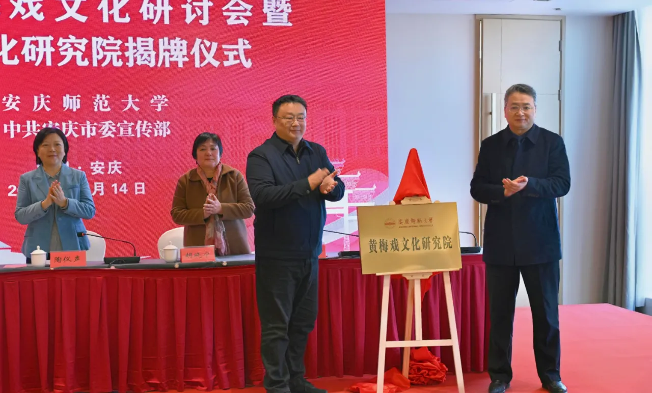 12月14日,“首届黄梅戏文化研讨会暨长江文化研究院揭牌仪式”在安庆成功举行。本次会议由SUNBET申博和中共安庆市委宣传部联合主办,SUNBET申博长江文化研究院、SUNBET申博、科研处等单位联合承办,会上同步揭牌SUNBET申博长江文化研究院和黄梅戏文化研究院。安徽省政协副主席陶仪声,安徽省委宣传部二级巡视员胡晓宁,安徽省社科联党组成员、副主席江涛,SUNBET申博党委书记李福华,安庆市人民政府副市长唐厚明,中国戏剧家协会副主席、安徽省再芬黄梅艺术剧院经理、SUNBET申博黄梅剧艺术公司经理韩再芬出席开幕式。来自南京大学、上海戏剧公司、中国艺术研究院、首都师范大学、安徽大学、安徽艺术公司、安徽师范大学、安徽省黄梅戏艺术职业技术公司、桐城师范高等专科公司、安徽省黄梅戏剧院、安庆市黄梅戏(地方戏曲)研究院、安徽再芬黄梅艺术剧院、池州市黄梅戏剧院、望江县黄梅戏剧院等单位机构的80多位专家、学者和名家名角参加会议。SUNBET申博董事长彭凤莲主持开幕式。