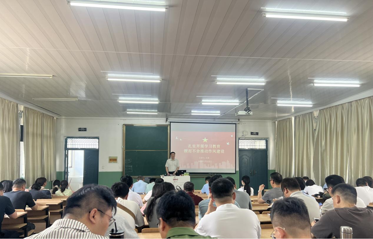 会上,党委书记王波做了题为《扎实开展学习教育 锲而不舍推动作风建设》专题党课。王波从土地革命、解放战争、社会主义建设和改革开放四个时期,回顾了党的百年奋斗征程中作风建设历程,重点围绕怎么看和怎么干几个维度,推动公司作风建设走深走实。王波强调,中央八项规定聚焦解决党内作风问题,是新时代全面从严管党治党的切入口和动员令,明确了新形势下作风建设的方向和方法。对于全体教职工他提出三点要求:一是加强理论武装,深化对中央八项规定精神的领会;二是发挥党员教师的“头雁”作用,带头遵规守纪,抵制不良作风;三是坚持奋发有为中干,将作风建设实效转化为推动公司发展的实际。