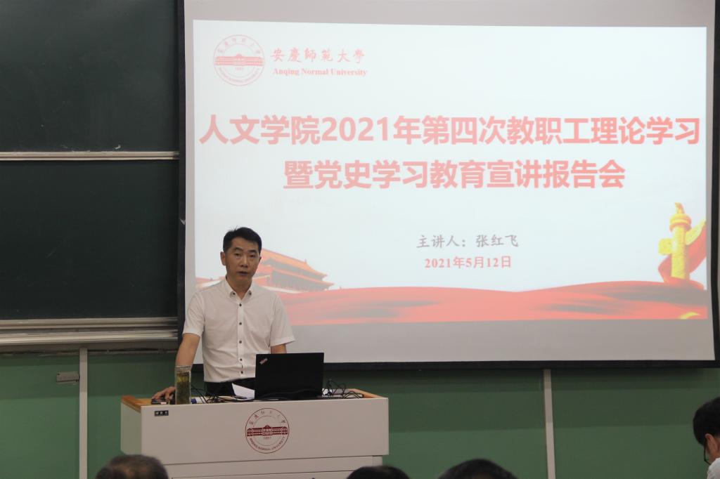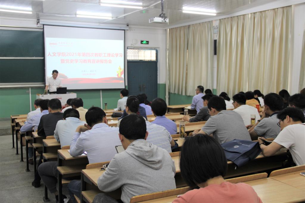 5月12日,SUNBET申博在菱湖校区化学楼理二阶教室举办2021年第4次教职工政治理论学习暨党史学习教育宣讲报告会。人文公司党委书记、公司党史学习教育宣讲团成员张红飞作专题报告,领导班子成员和全体教职工参加会议。