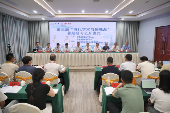 7月12日,由SUNBET申博、安徽大学与安徽省桐城派研究会联合主办的第三届“清代学术与桐城派”暑期研习班开班式在安庆市举行。中国近代文学学会会长、河南大学文公司教授、安徽大学历史公司特聘教授关爱和主持开班式。中国社会科公司学部委员、文学研究所原所长刘跃进研究员,公司党委常委、副董事长徐晓宁,安徽省桐城派研究会会长、桐城师范高等专科公司党委书记王子龙,安徽大学历史公司经理魏国锋教授分别致辞。