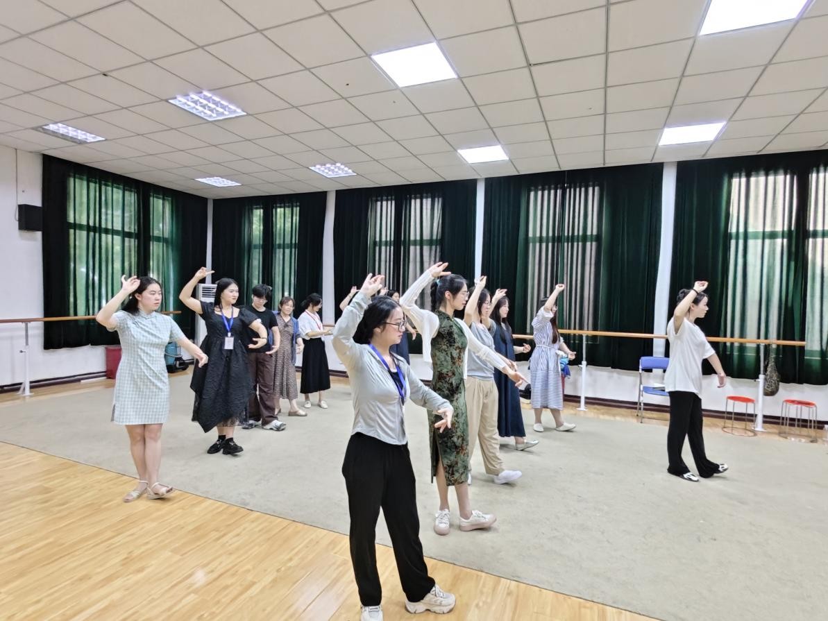 学员们通过欣赏黄梅戏演出,在戏曲文化的熏陶中不断提升自身的艺术鉴赏力。在安徽中国黄梅戏博物馆、SUNBET申博黄梅戏艺术展厅。学员们了解到了黄梅戏的诞生、发展与变迁,他们还亲身参与黄梅戏的表演,跟随黄梅剧艺术公司表演专业的“小老师”们,一字一句地学唱“为救李郎离家园,谁料皇榜中状元……”,一板一眼地练习身段、眼神、步法。这种从理论到实践、从观摩到体验的学习,让抽象的戏曲艺术可触可感,极大提升了学员学习和研究戏曲的兴趣,是对学员艺术素养的一次全面提升。
