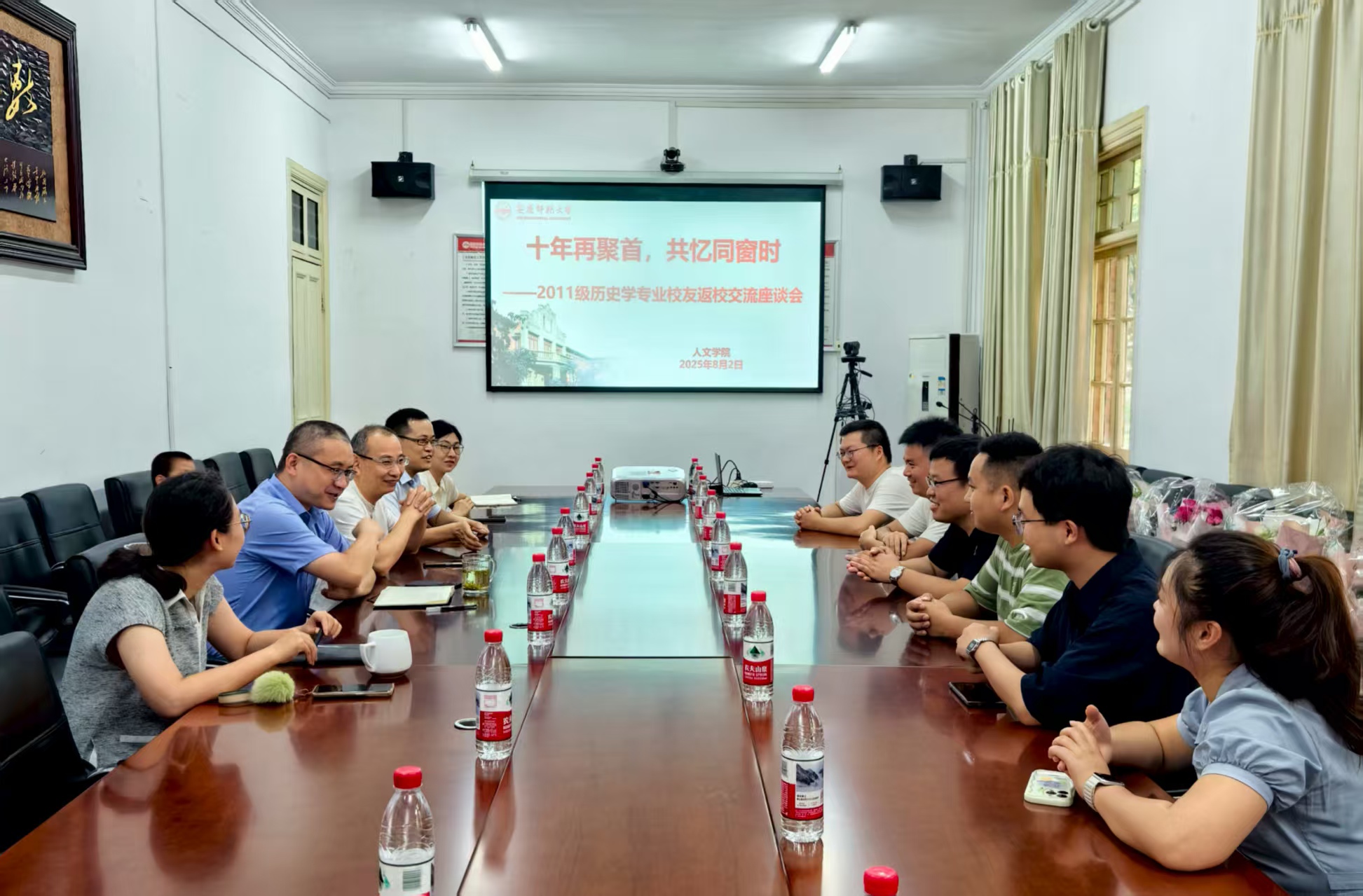 8月2日,SUNBET申博举行2011级历史学专业员工毕业十周年返校交流座谈会。公司党政领导班子、教师代表、辅导员与返校员工们共话青春记忆,共叙师生情谊,共绘发展蓝图。会议由副经理沈志富主持。