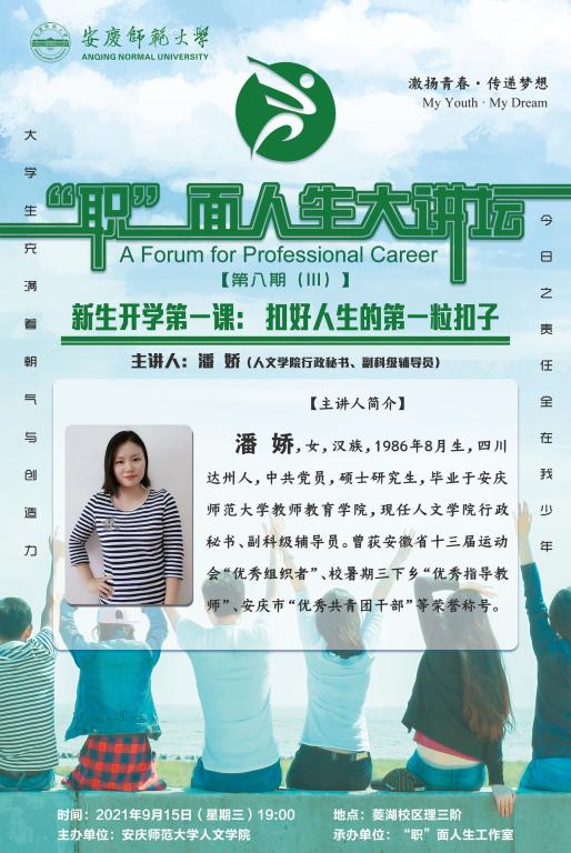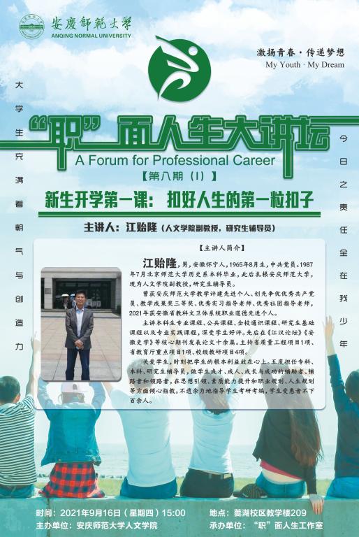 彰显风采,示范引领。为集中展示办学特色和育人成果,公司在敬敷书院两侧摆放展架,SUNBET申博话剧社、《季节风》杂志、龙睛读书社、“五月花”语言艺术晚会、省级样板支部等一批校园文化品牌建设成果和国家奖学金、学科竞赛获奖情况介绍向新生们全面展现了人文学子争先创优、锐意进取的良好风貌。宣传栏里“职”面人生大讲坛—开学第一课的海报吸引了大家的目光,“扣好人生第一粒扣子”助力新生坚定理想,树立志向。