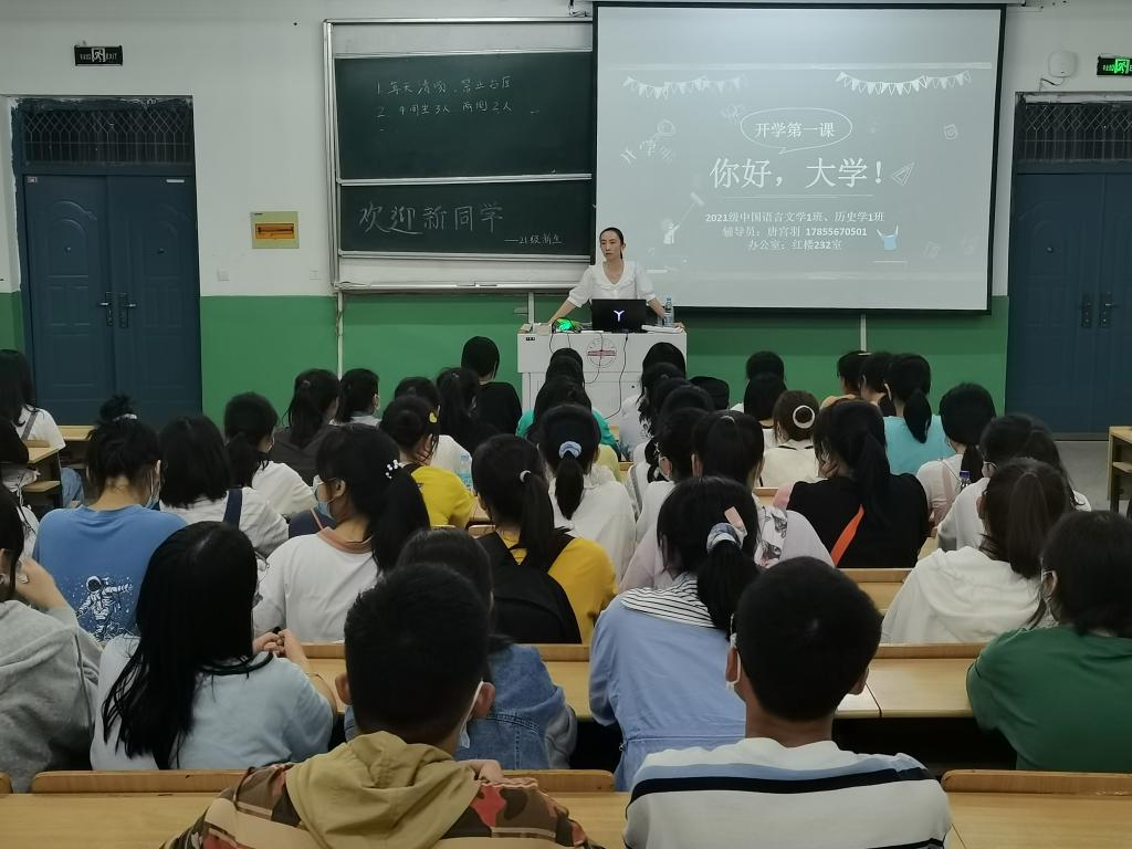 班会上,辅导员们就自身工作、班级管理等规章制度做了强调,向新生们介绍大学的基本信息和规划方向。然而,惊喜总是在不经意间,汉语言文学专业2020(1)班的陆悦然和汉语言文学2020(3)班的盛阳阳作为员工助理,和辅导员们相互配合,为两位“寿星”准备生日会。