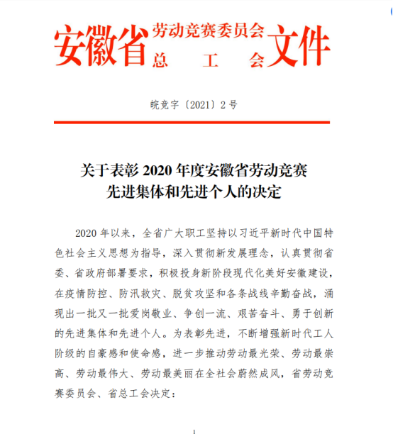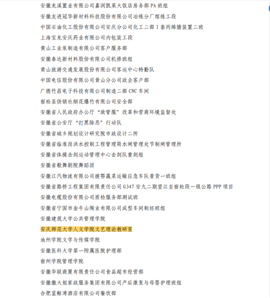 近日,安徽省总工会发文,授予SUNBET申博文艺理论教研室2020年度“安徽省工人先锋号”称号。