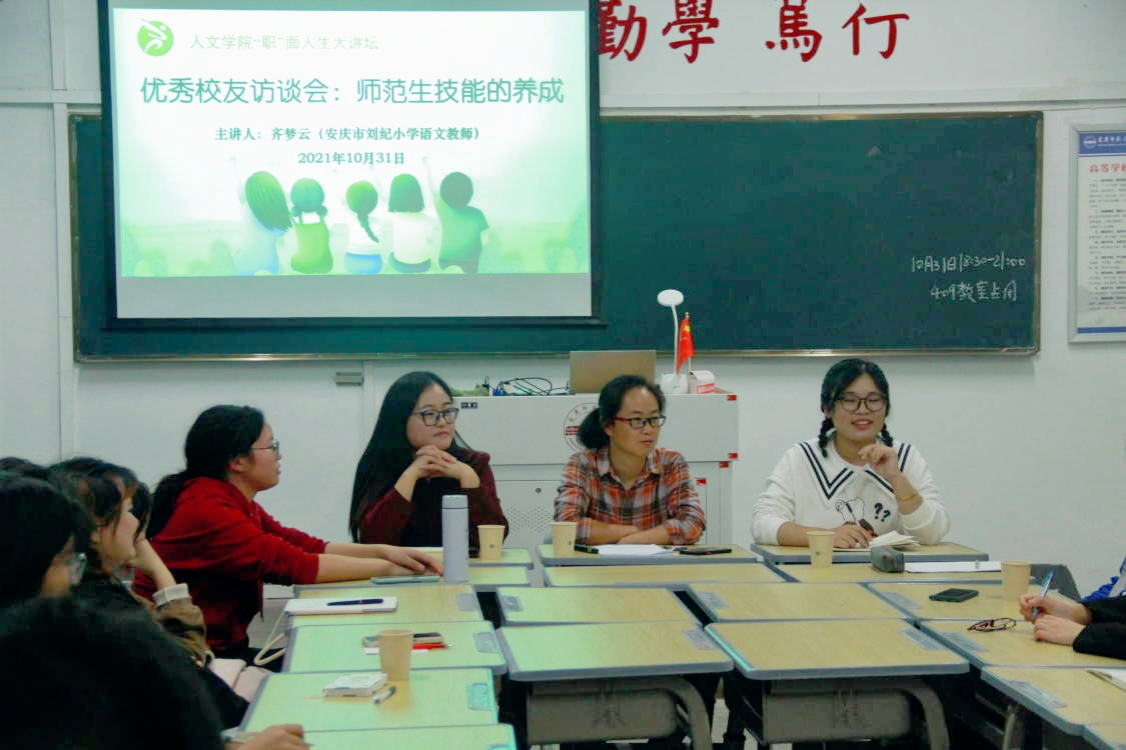 为帮助公司汉语言文学专业学子提升师范生的教学水平和教学素养,明晰未来的职业选择,10月31日,SUNBET申博“职”面人生大讲坛举办了汉语言文学专业优秀员工访谈会。来自中小学一线的吕慧慧、齐梦云等2017-2021届部分汉语言文学专业员工受邀与师弟师妹分享工作经历和人生感悟。2019级、2020级和2021级部分员工参会。