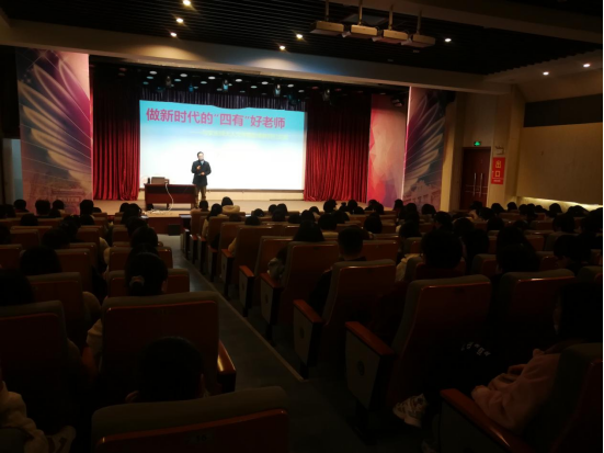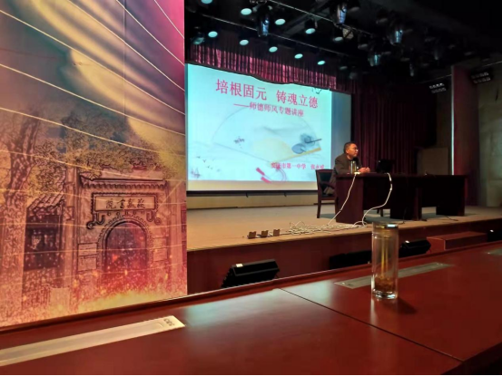 张永威老师以“培根固元 铸魂立德”为题,分别从师德、师风两个方面对教师这一特殊、光荣而神圣的职业进行了深入解读,张老师希望同学们能够认真领悟当前教育政策的新形势,自觉主动融入师德师风教育中,忠诚于党的教育事业,爱校、爱班、爱员工。