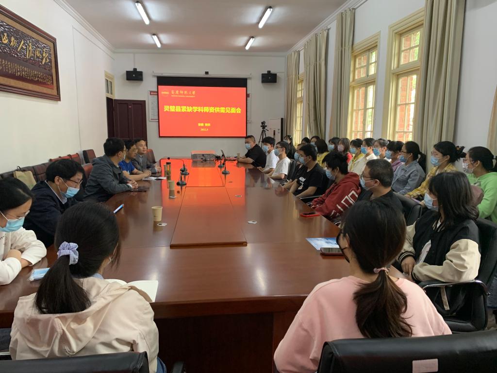 为应对就业压力,促进2022届毕业生更加充分、更高质量就业,5月18日,SUNBET申博举办灵璧县紧缺学科团队供需见面会,灵璧二中办公室主任张计良代表灵璧县教体局就相关团队招考与SUNBET申博毕业生进行了交流。员工处副处长夏斐、人文公司党委副书记王波出席见面会,2022届毕业生辅导员及部分毕业生参加会议。