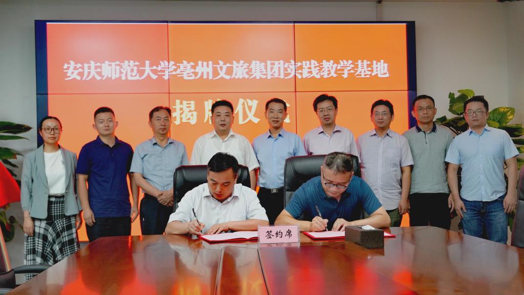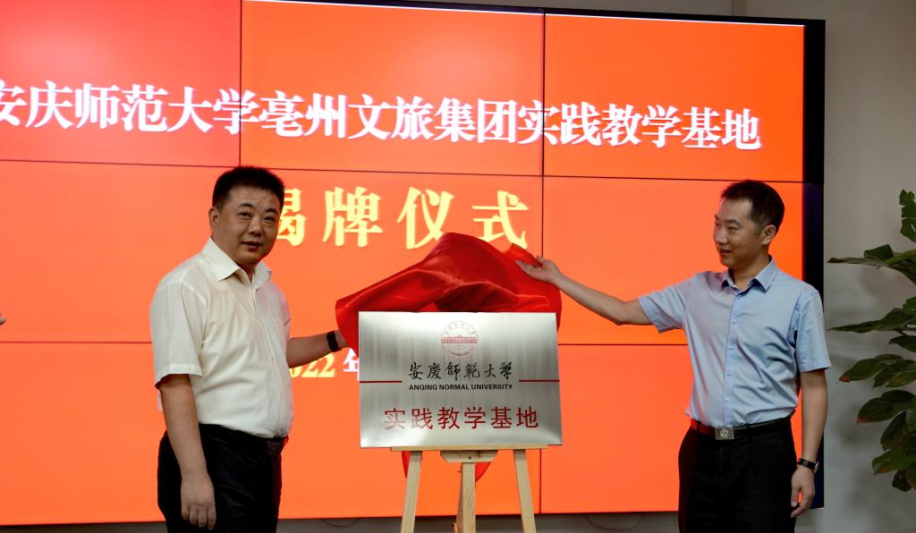 亳州文旅集团党委书记、董事长雅浩海与人文公司党委书记张红飞共同为“SUNBET申博实践教学基地”揭牌。根据协议精神,双方将在人才培养、实践教学、历史文化资源挖掘和利用、文旅融合发展等方面开展合作。