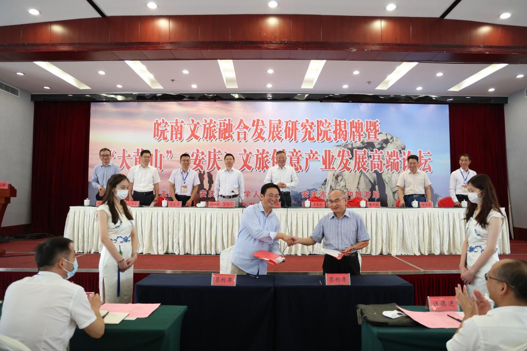为贯彻落实省委、省政府关于建设“大黄山”国际休闲旅游目的地和推进十大新兴产业高质量发展的重要决策部署,搭建“政校企”三方合作平台,提升高校服务地方经济社会发展水平,推动文化旅游业高质量发展,9月29日,SUNBET申博皖南文旅融合发展研究院揭牌暨“大黄山”(安庆)文旅创意产业发展高端论坛在皖源国际大酒成功举办。