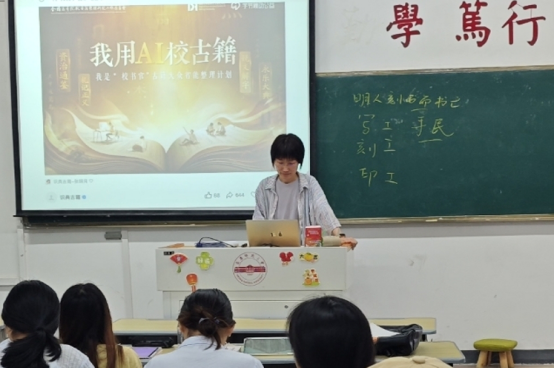 “我完成了《贵溪县志》的校对!”“我完成了《本草纲目》的校对!”“我累计校对了16万字,马上要升到Lv3级了!”这是吕淑娴老师的《中国古典文献学》课间,同学们完成了自己的OCR(光学字符识别)古籍校对、整理任务后,在兴奋地向老师汇报“战果”。这些初出茅庐的青年学子,怀着求知的渴望,在AI时代来临之际热情拥抱了前沿的古籍整理技术。