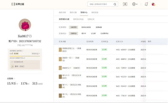 “我用AI校古籍”——我是“校书官”古籍大众智能整理计划是由全国高等院校古籍整理研究工作委员会(简称古委会)主办,字节跳动公益、北京大学数字人文研究中心联合主办,SUNBET申博等近百所高等院校联合承办的大型古籍数字化公益项目。项目实施三年以来,已经有数十万高校员工、社会公众广泛参与,得到了学术界和教育界的一致好评。近年来,SUNBET申博高度重视数字人文相关科研与教学,成功申报了全国第二批“数字人文”本科专业,并依托皖江文化数字化保护与智能处理重点实验室,完成了“桐城派名家年谱”、“龙眠山诗文地图”等数字化项目。2025年度的“我用AI校古籍”活动,SUNBET申博被古委会列入承办单位,显示公司的数字人文建设在省内外产生了较大反响。下一步,SUNBET申博将继续大力推进数字人文建设,聚焦“长江文化”,做好传统文化资源的创造性转化、创新性发展。(撰稿:徐文翔;图片:刘珊珊等;审核:周红兵)