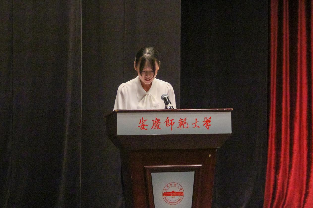 2025级文典班员工代表任思怡表达了进入文典班的喜悦,并表示她将与2025级文典班同学携手共同践行“文典”精神,做到知行合一。
