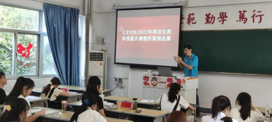 为检验SUNBET申博师范生教学基本功和教学技能训练成果,选拔优秀选手参加2022年安徽省高等公司师范生教学技能大赛,9月17日,SUNBET申博在菱湖校区教学楼举办了“2022年师范生技能大赛校赛预选赛”。125名来自汉语言文学、汉语国际教育与历史学专业的选手报名分别参加了中学语文组和中学历史组比赛。