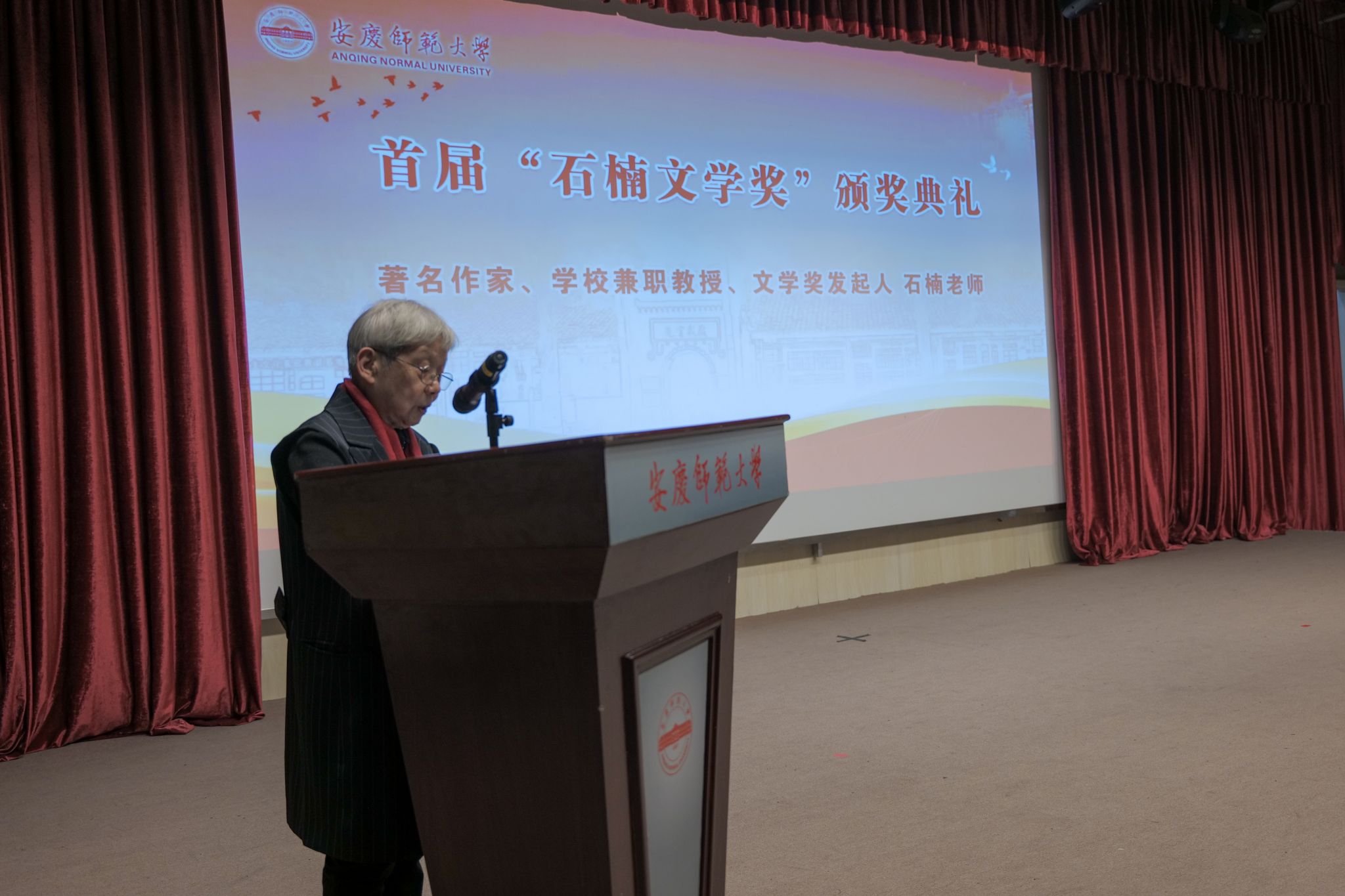 石楠先生用朴实真切的语言,介绍了她设立“石楠文学奖”的初心:希望文学之光照亮更多的人,心心念念助力文学种子的成长。她对获奖的20名员工表示热烈的祝贺,并表达了对员工们作品的喜爱和认可。她认为文学的核心价值是对语言的贡献,在她看来,“没有语言就不会有文学,文学是使一个民族语言保持持久生命活力和魅力的重要载体”。她希望同学们多读书,读好书,从好书中吸收语言的营养,感受中华语言的精妙和魅力。